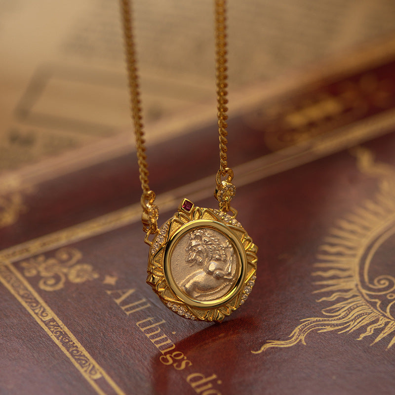 18K Gold American Lion 18K Gold Ruby Ancient Coin Vintage Necklace