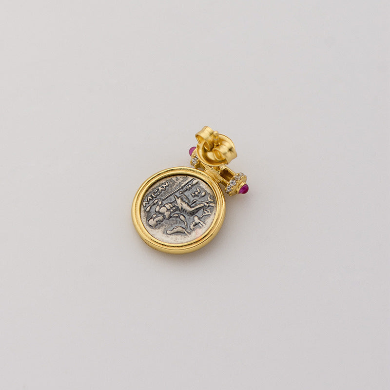 18K Hercules Ruby Vintage Portrait Ancient Coin Earrings