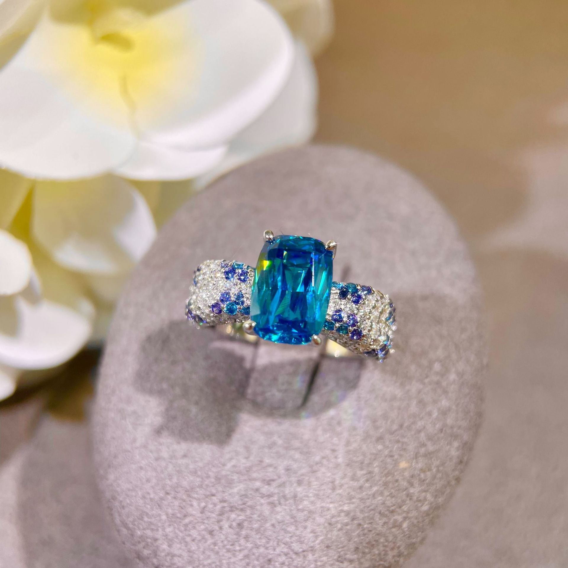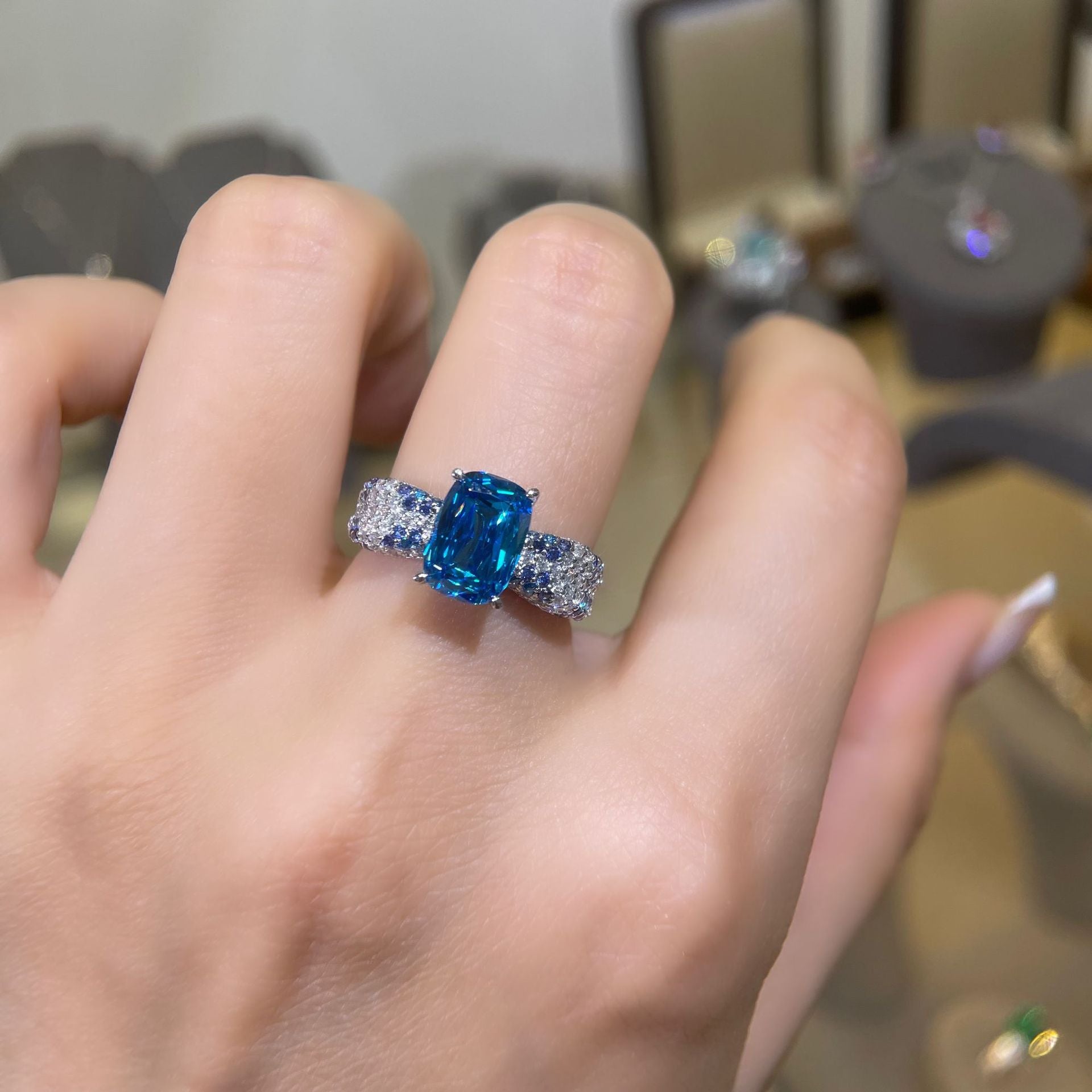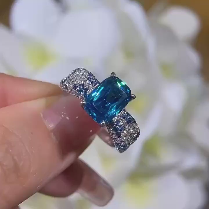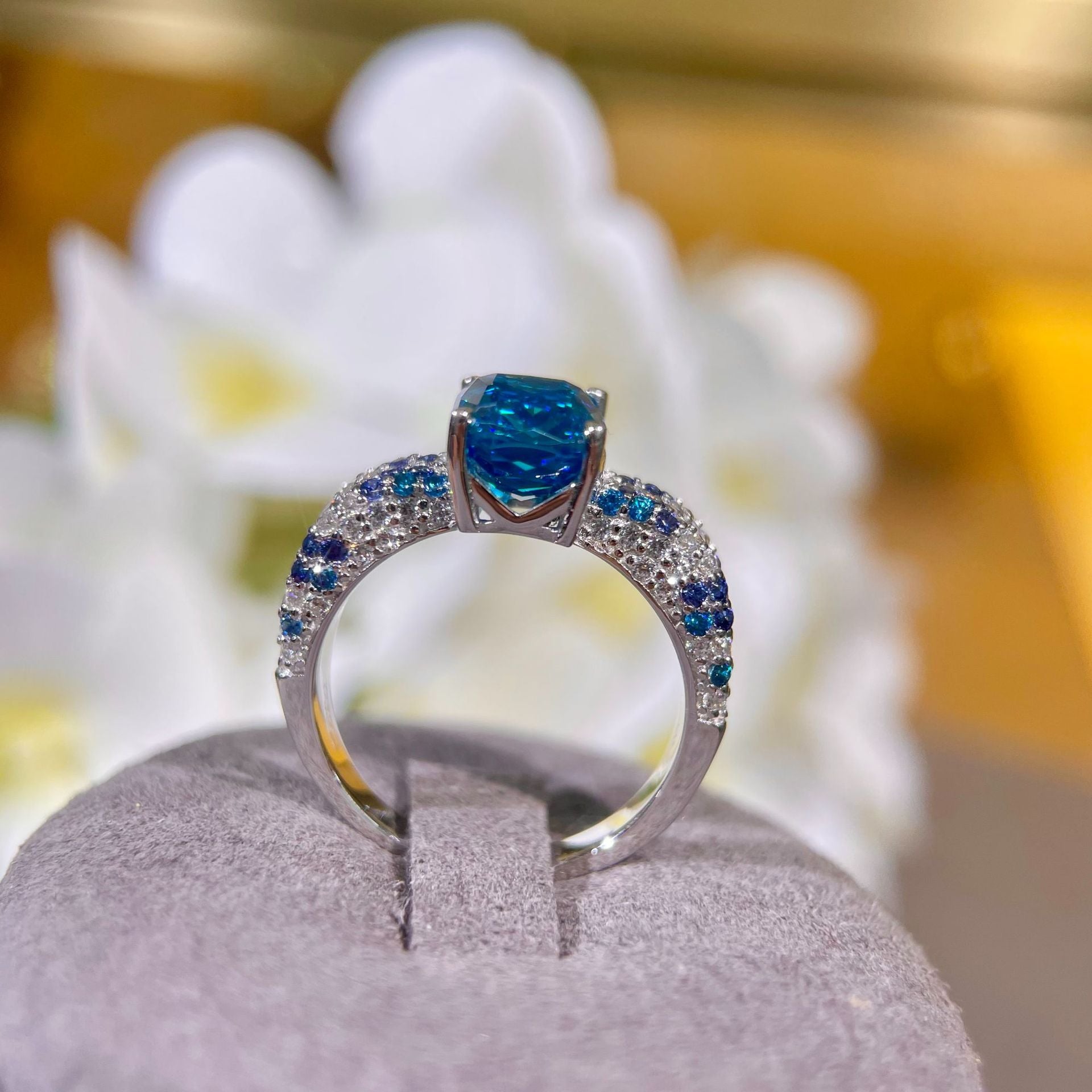 3.6 Carat Ashoka Diamond Cut Cultured Gemstone Gradient Diamond Navy Blue Full Star S925 Silver
