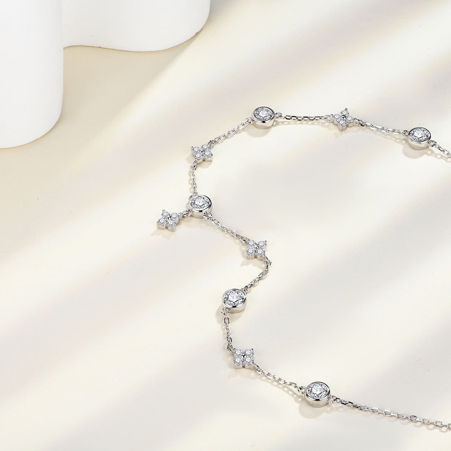 925 sterling silver moissanite petal necklace Korea ins style four-leaf clover necklace female