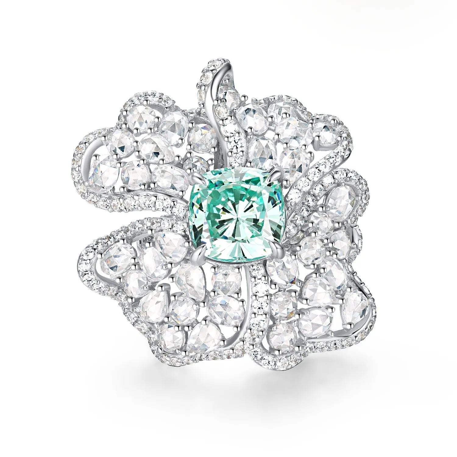 Aquamarine Paraiba Floral High Carbon Diamond Ring