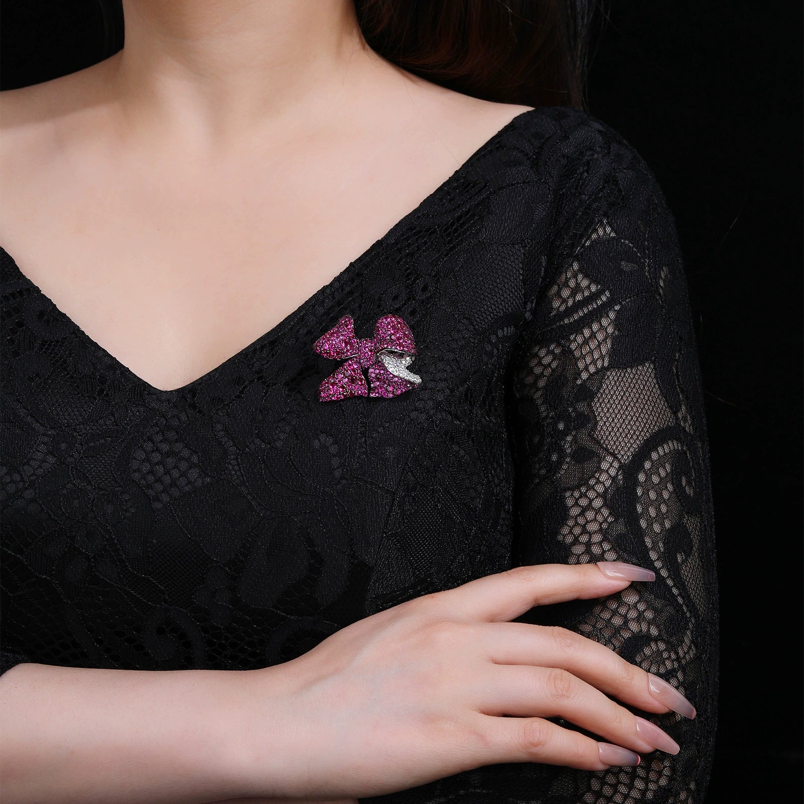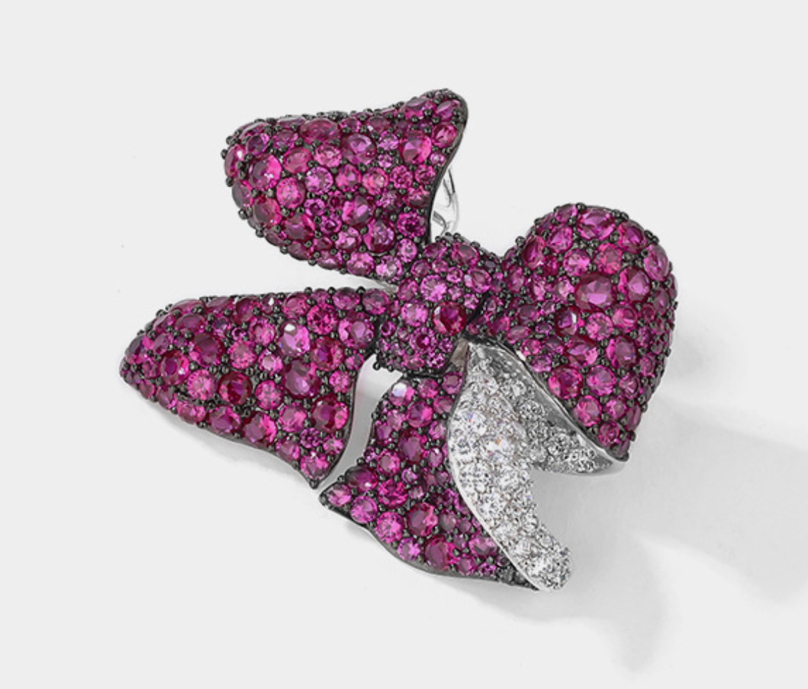 Bow Petal Diamond Brooch Red Hundred High-end Corsage