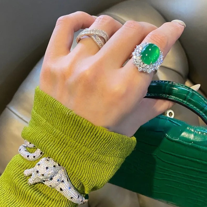 Chalcedony Flower Ring High Carbon Diamond Chalcedony