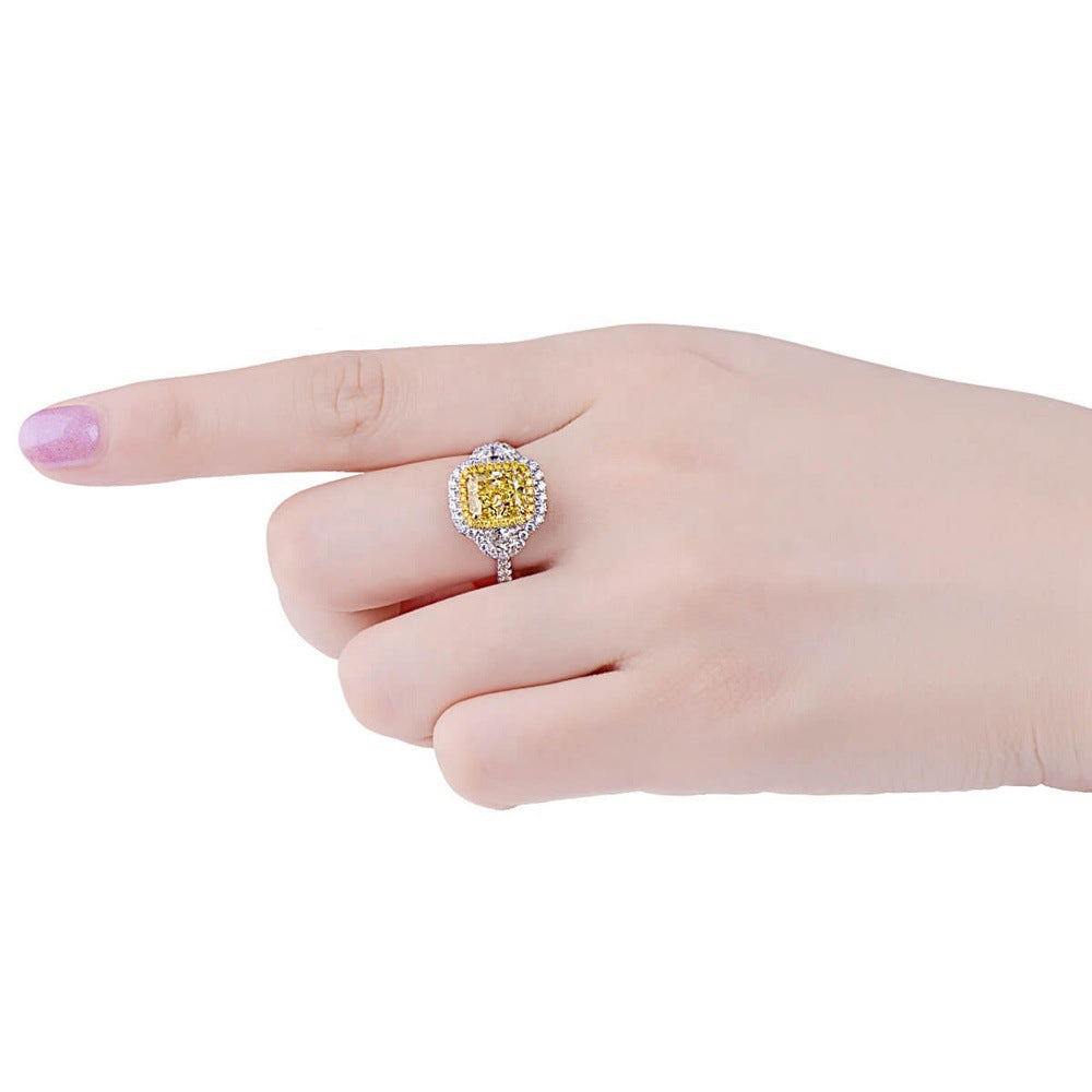 Double Halo Engagement Brilliant Yellow 8A Ice Cut Bicolor Ring