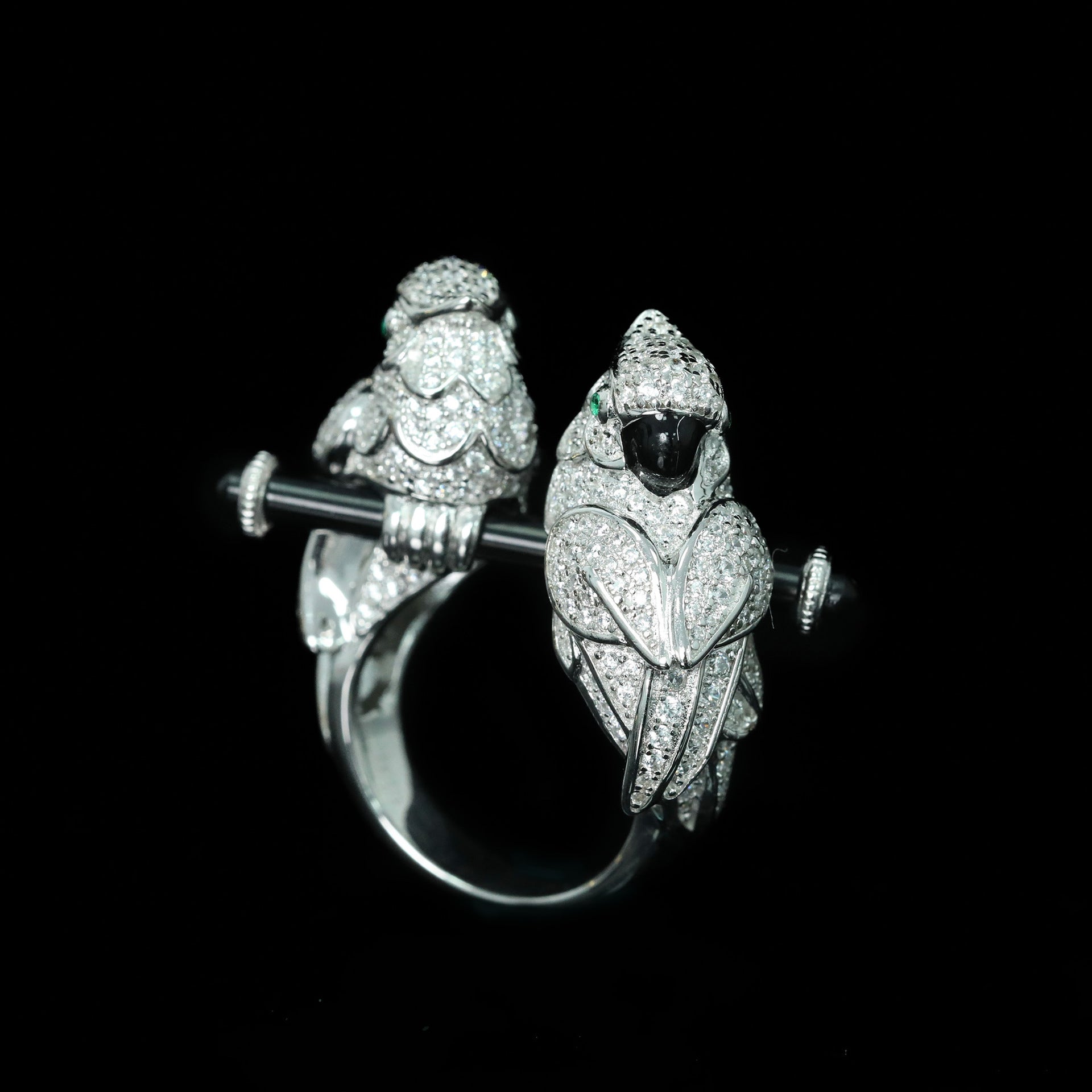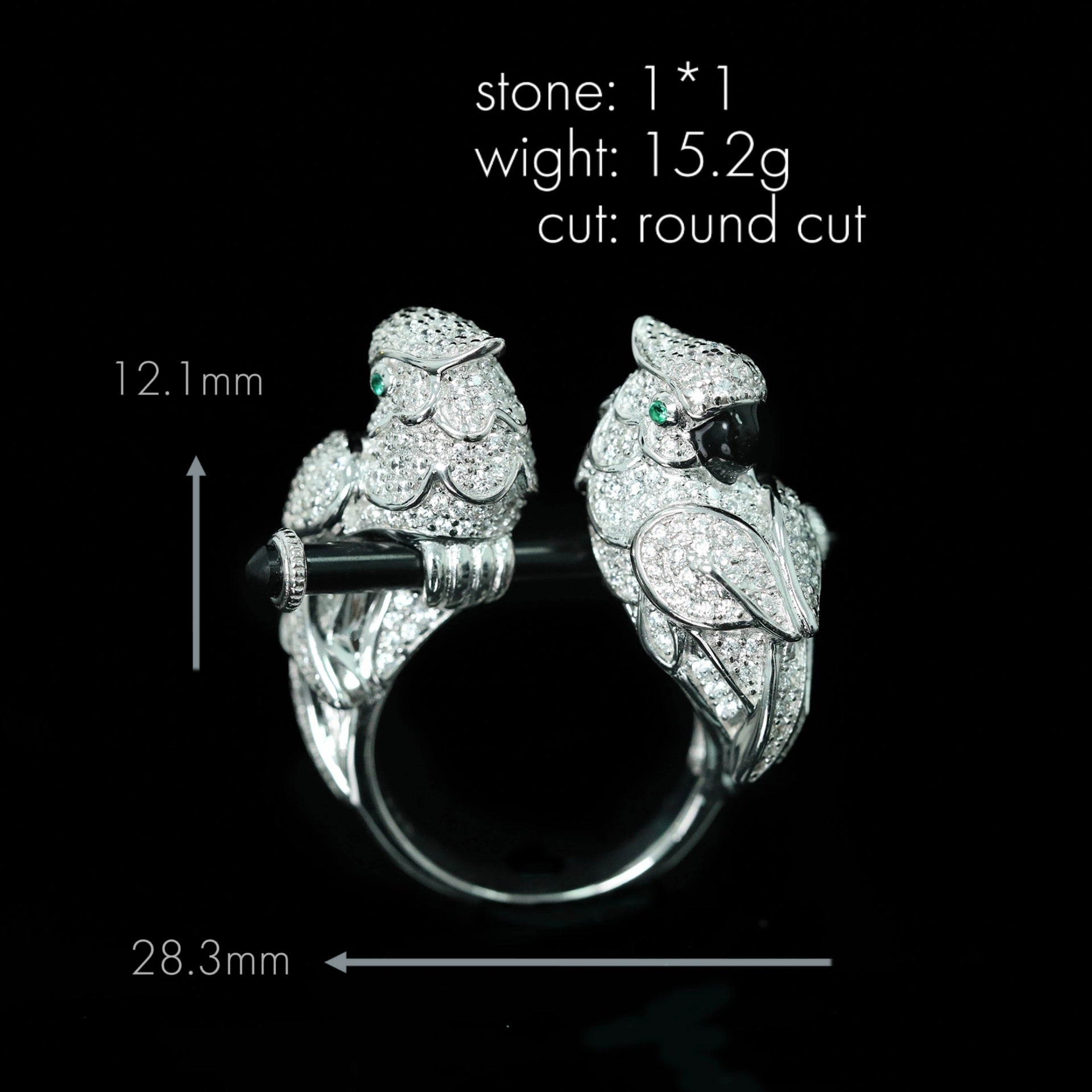 High Carbon Diamond Enamel Parrot Double Head Love Bird Ring