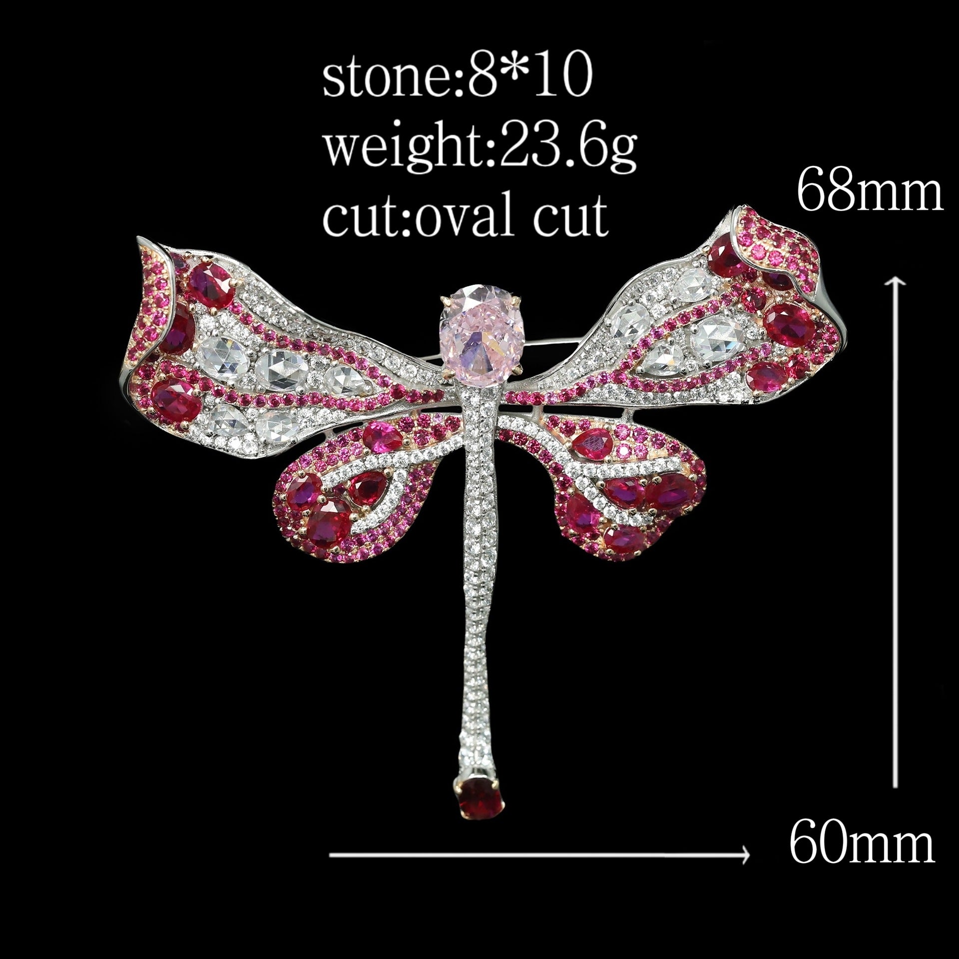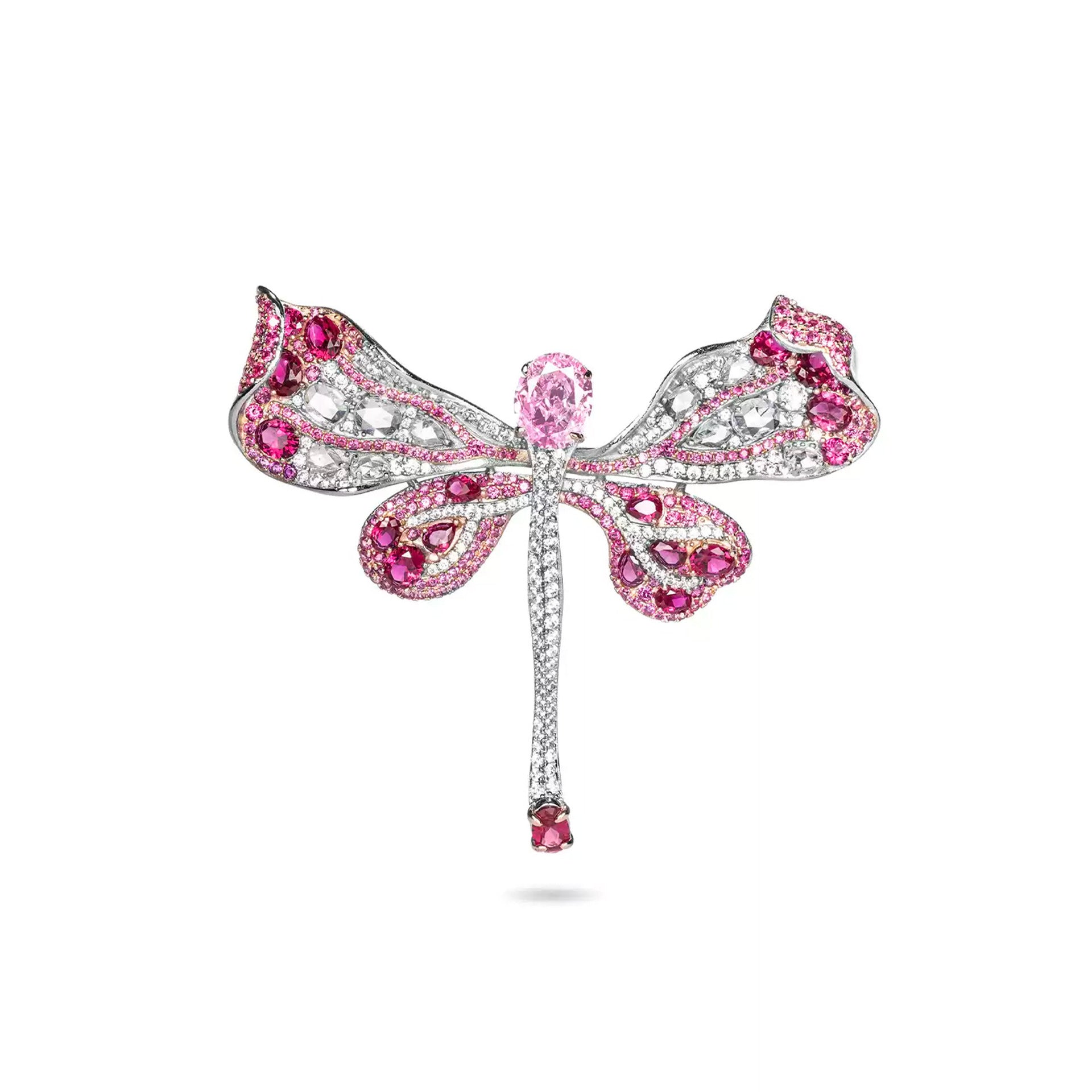 High Carbon Diamond Pigeon Blood Red Cindychao Pink Dragonfly Brooch