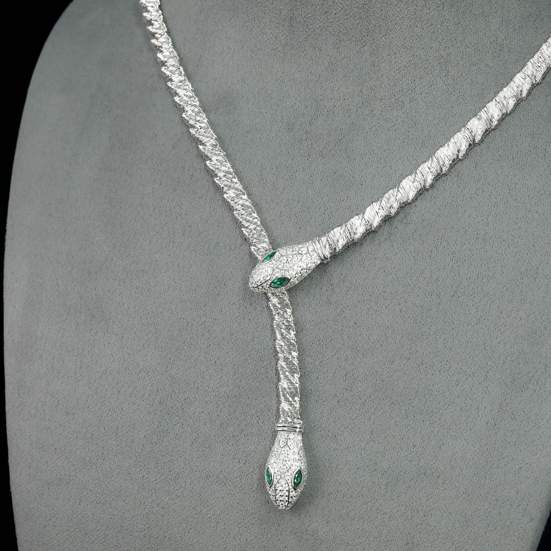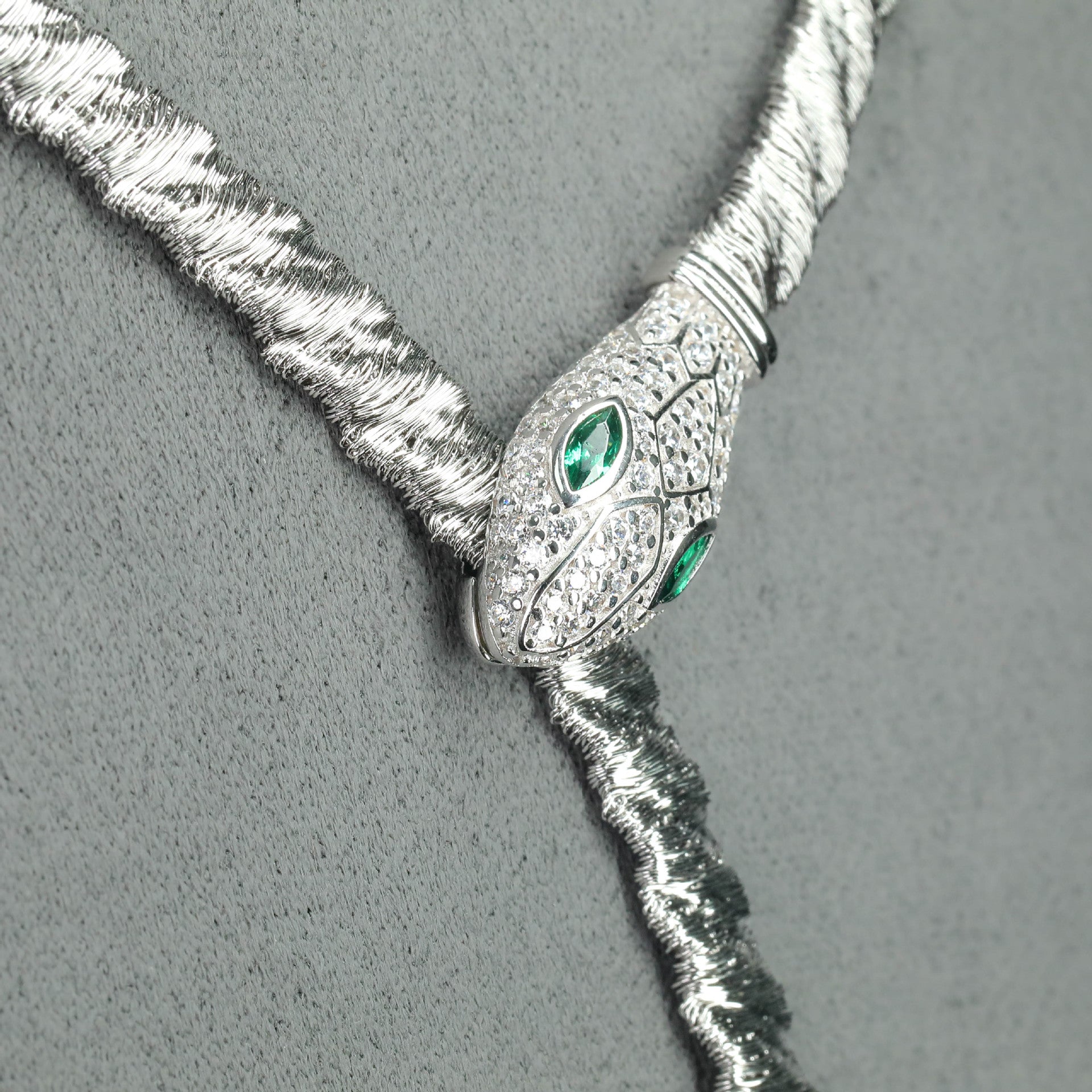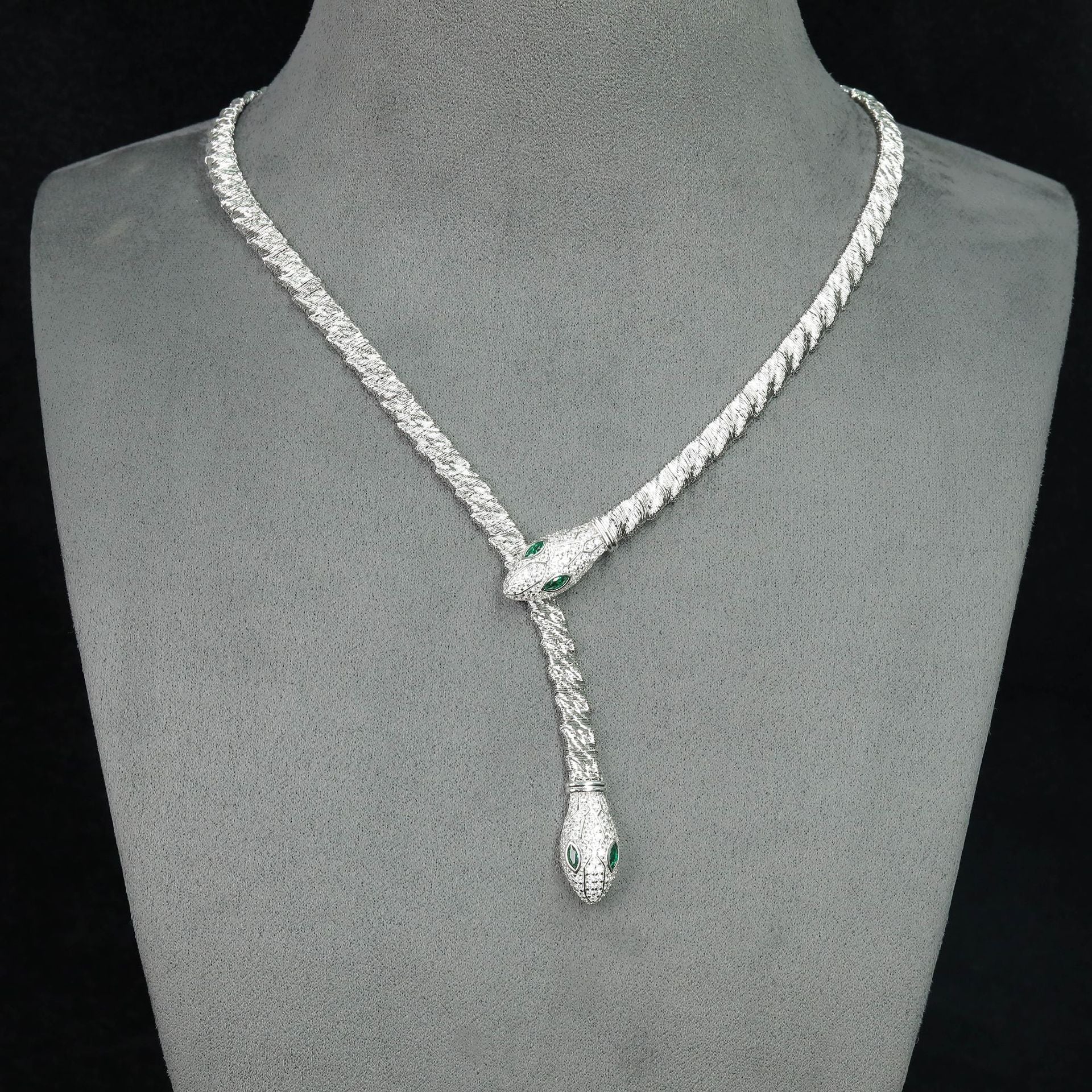 High Carbon Diamond Spirit Snake Muzo Green Silver and Gold Plated Collarbone Chain