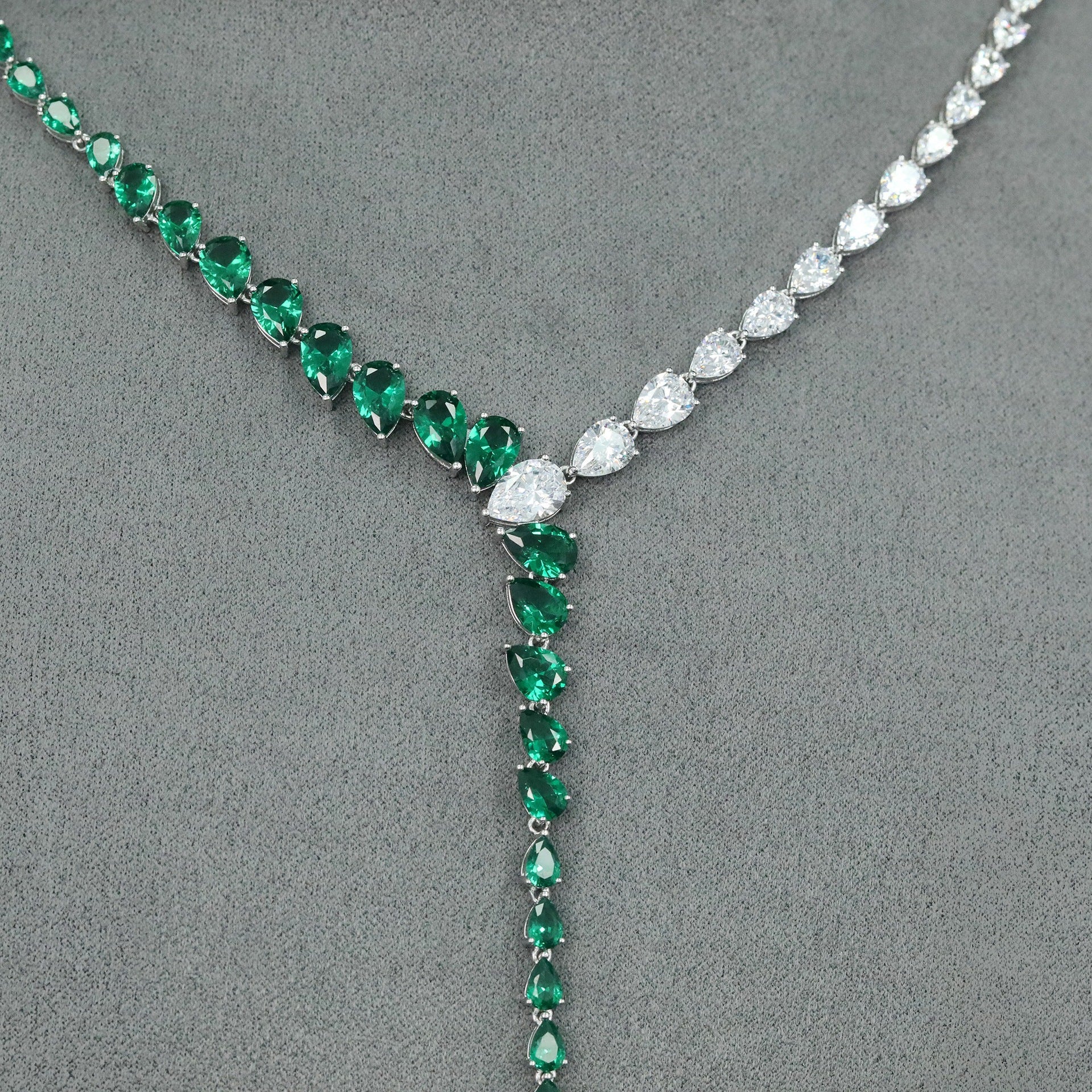 High Carbon Diamond Spirit Snake Muzo Green Teardrop Y Silver Plated Necklace