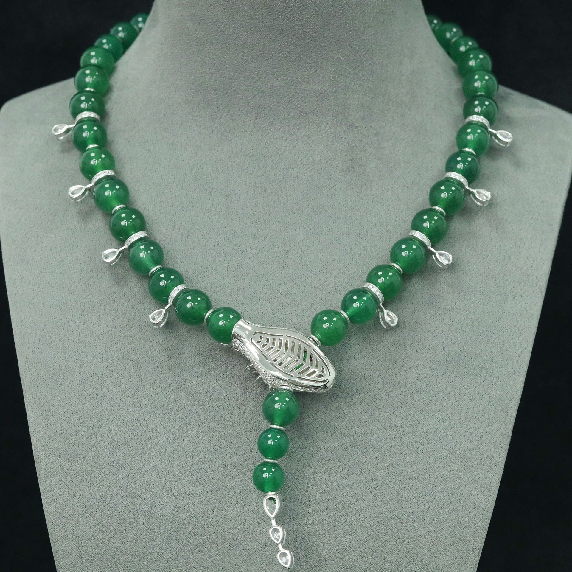 High Carbon Diamond Spirit Snake Natural Chalcedony Silver Plated Necklace