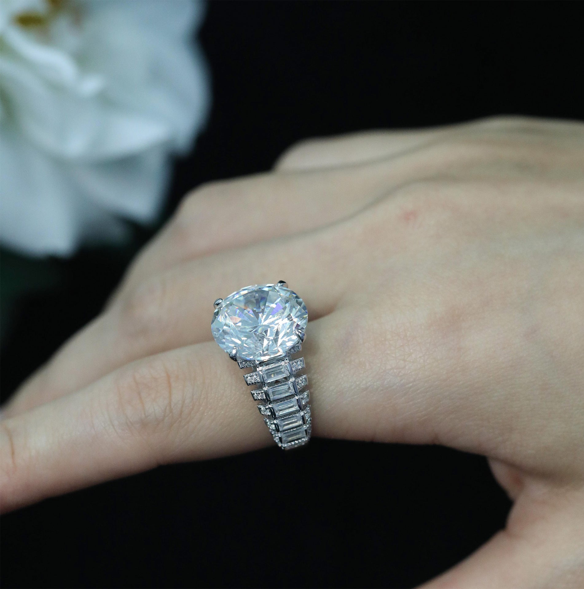 High Carbon Diamond White G Color 12 Carat Dove Egg Ring