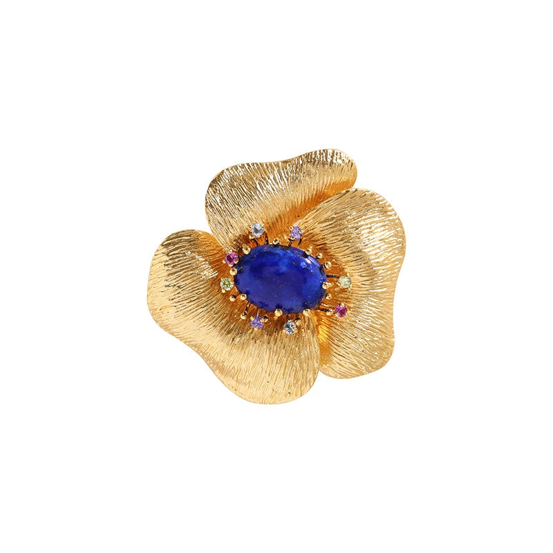 Lapis Lazuli Flower Brooch Gold Design Niche Corsages