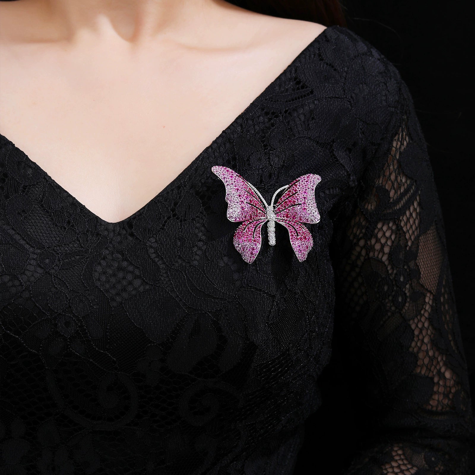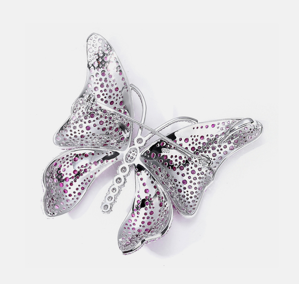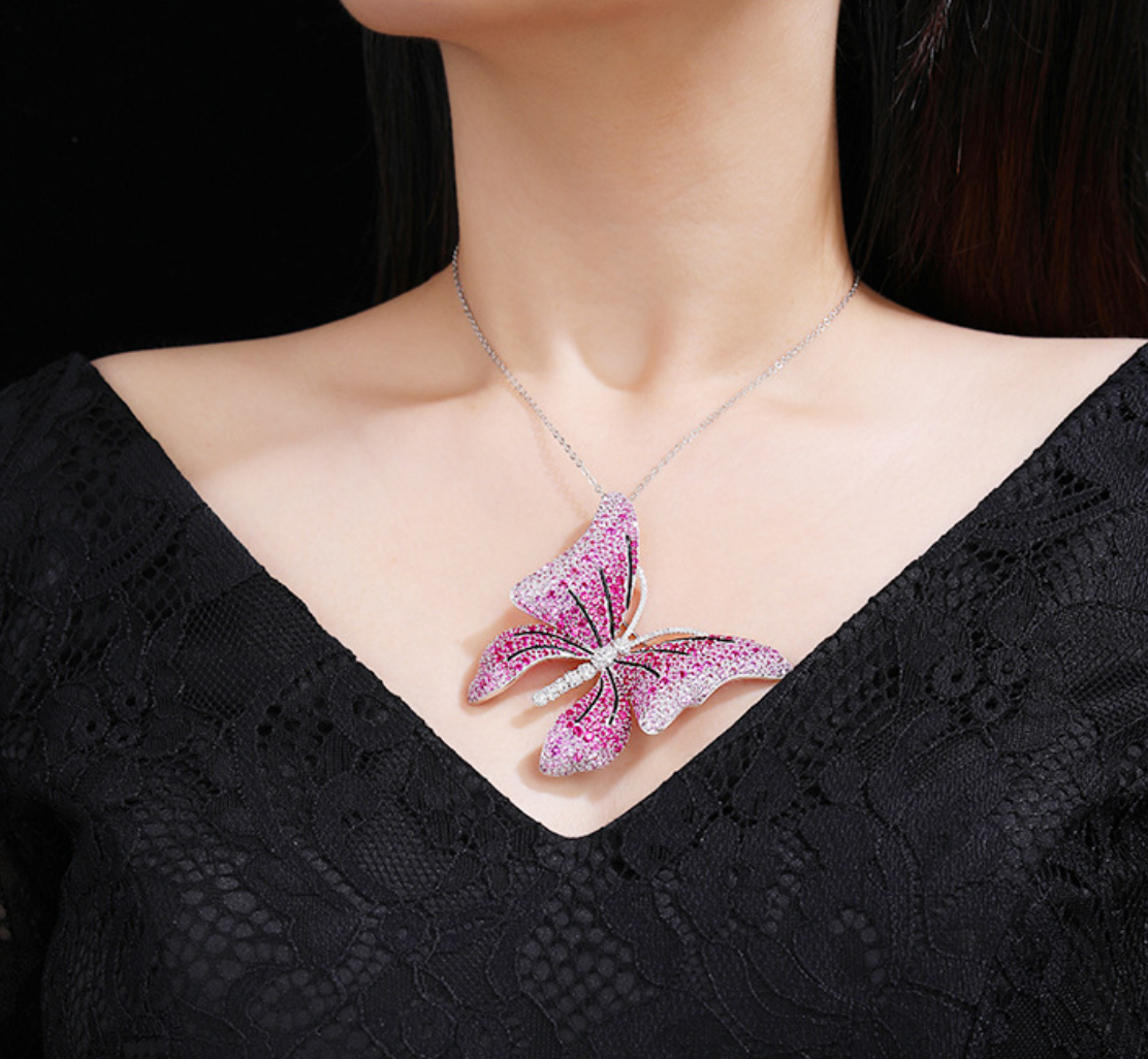 Rose Butterfly Diamond Brooch Necklace Pendant Dual Purpose Corsage
