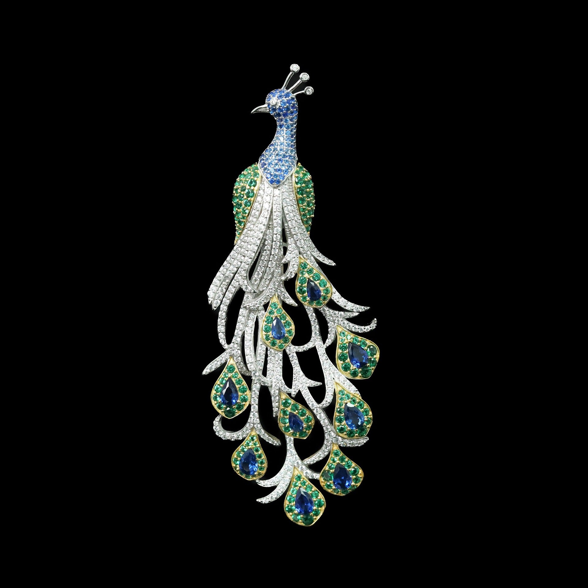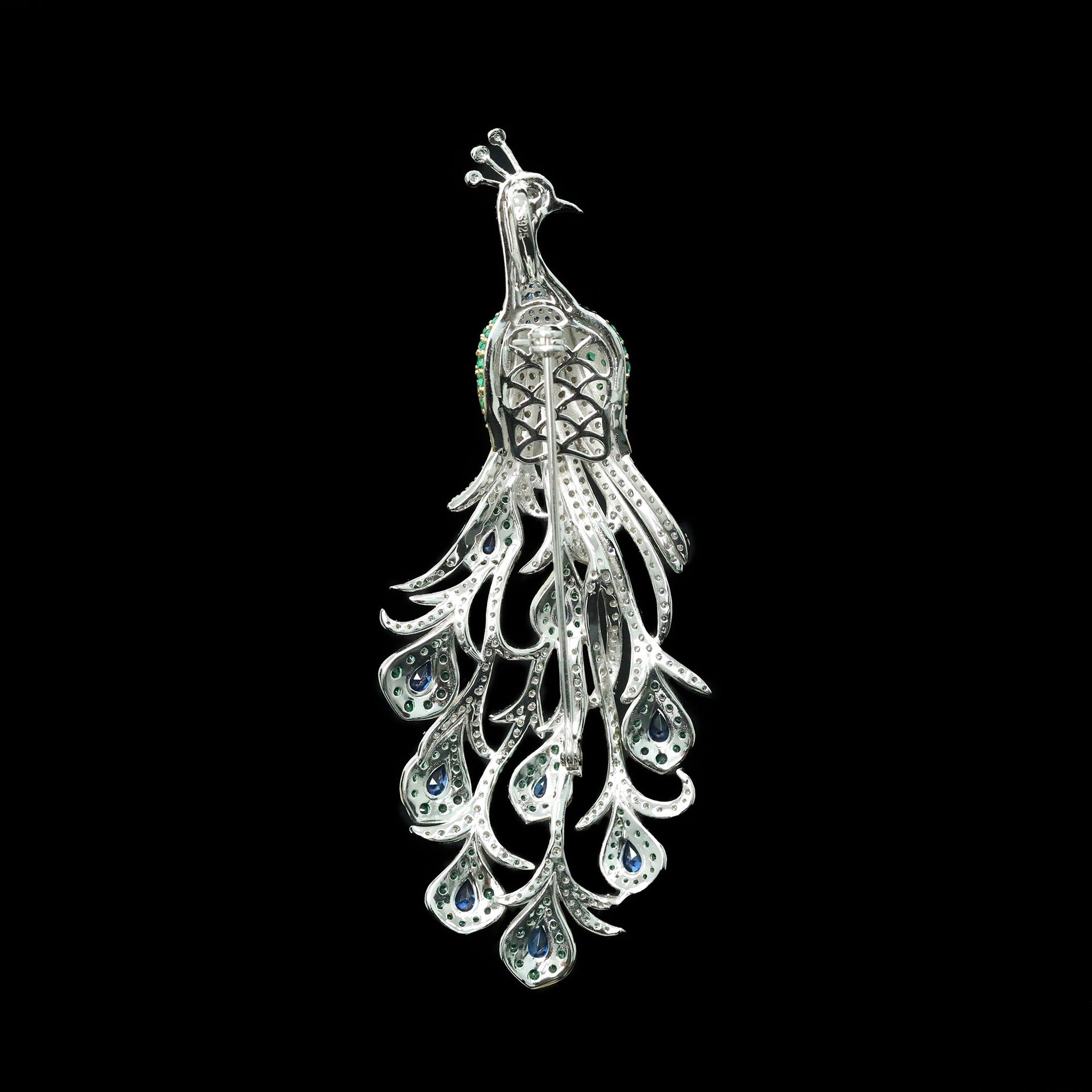 Royal Blue Bird's Feather Realm Peacock Brooch Pendant Dual Purpose