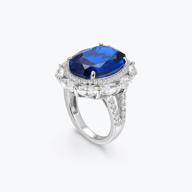 Royal Blue Ring Light Luxury Ice Cut Blue Ring