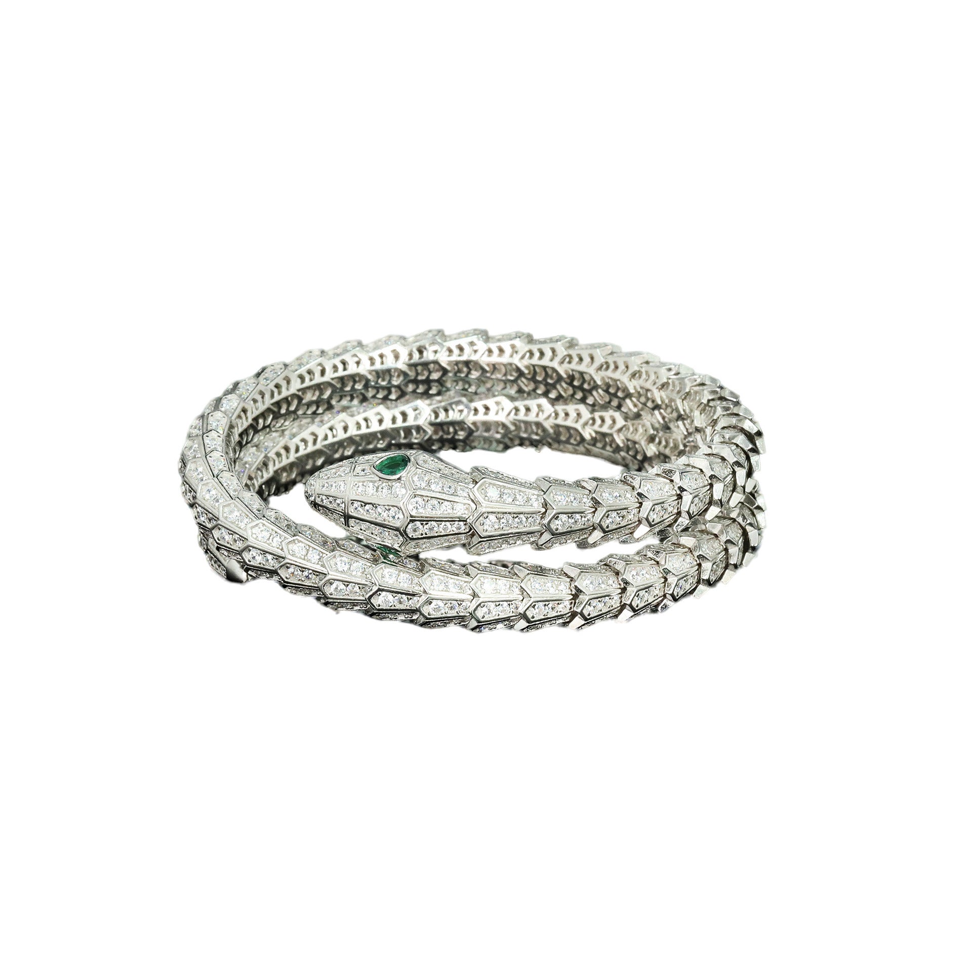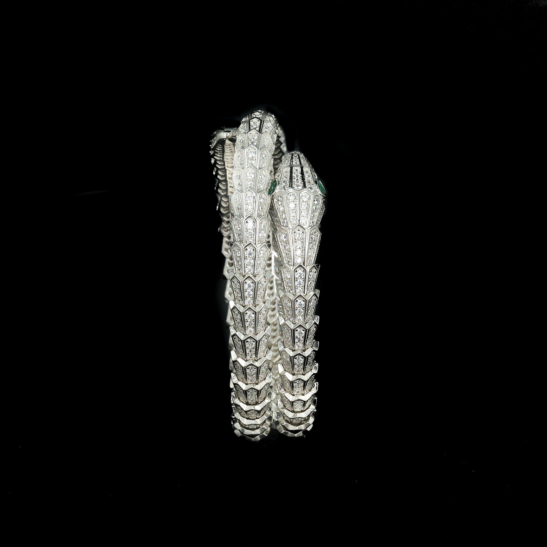 Silver Plated Gold High Carbon Diamond Spirit Snake Snake Bone Wood Zo Green Bracelet