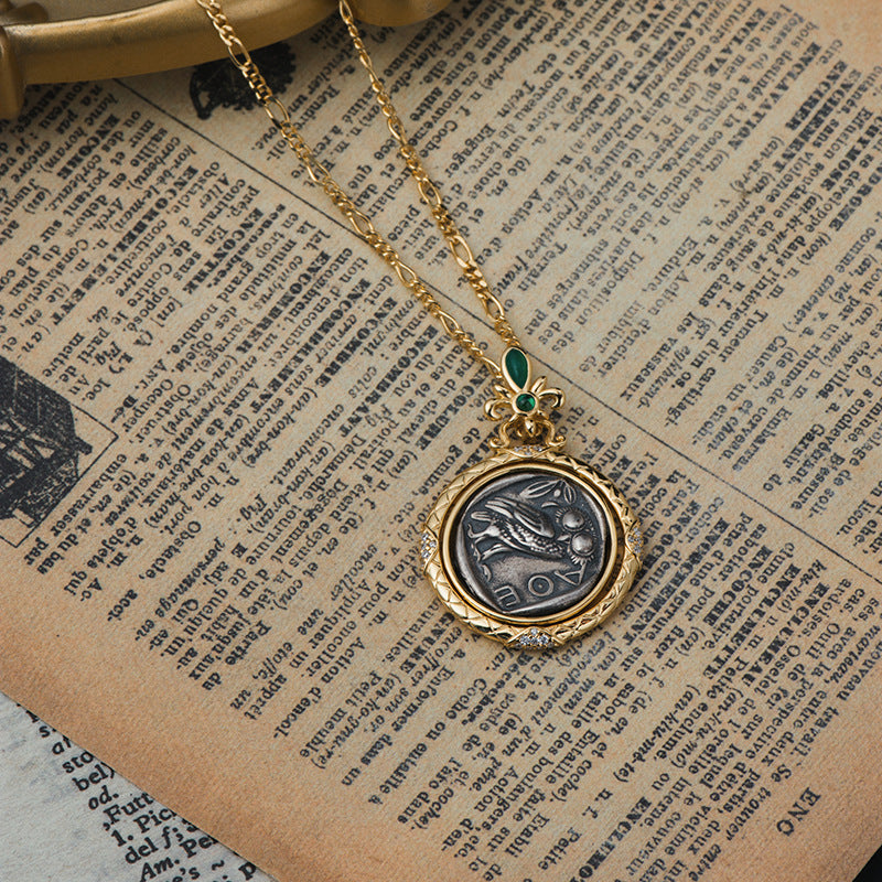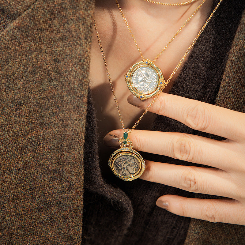 Small Athena Ancient Coin Event Clasp Vintage Sweater Necklace