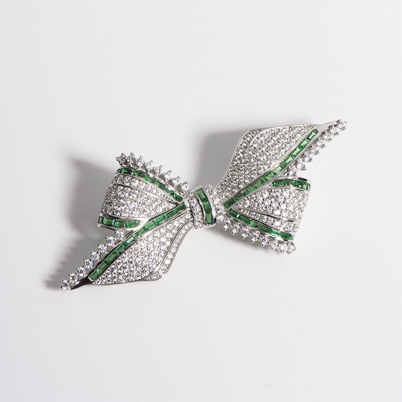 Vintage Elegant Green Silver Gilded Bow Brooch